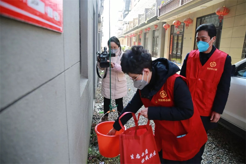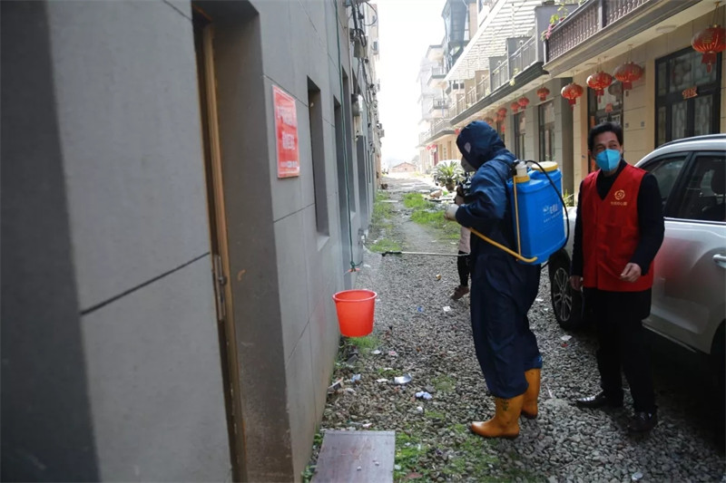 寧波科瑞特動(dòng)物藥業(yè)有限公司副總經(jīng)理劉瓊鮮親自來(lái)到村莊卡點(diǎn)以及隔離人員家中,為他們消毒并送上口罩。
