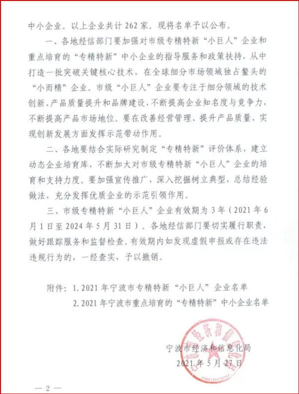 熱烈祝賀科瑞特入選寧波市專精特新“小巨人”企業(yè)名錄
