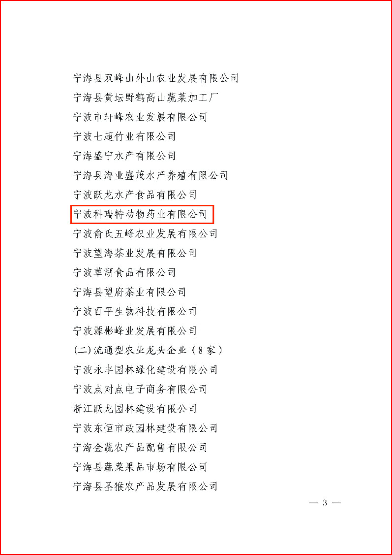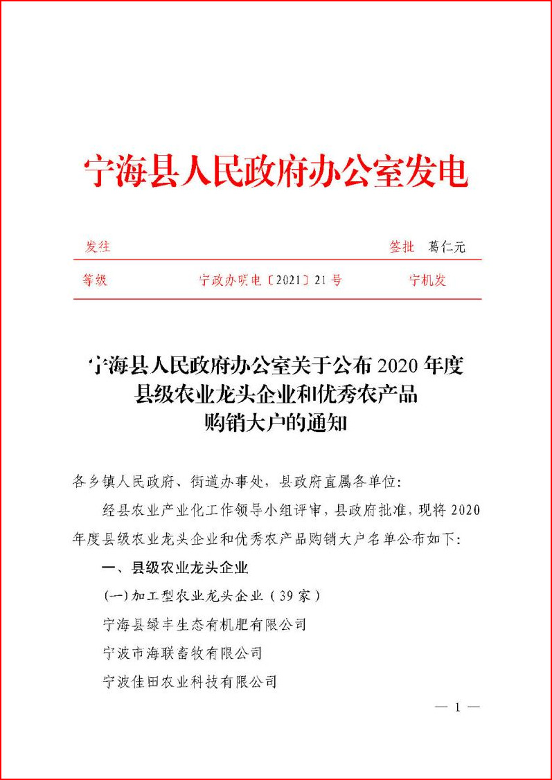 2021年12月22日,寧??h人民政府辦公室發(fā)布《關(guān)于公布2020 年度縣級(jí)農(nóng)業(yè)龍頭企業(yè)和優(yōu)秀農(nóng)產(chǎn)品購(gòu)銷大戶的通知》,熱烈祝賀科瑞特榮幸入選“縣級(jí)農(nóng)業(yè)龍頭企業(yè)”!
