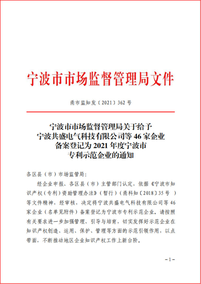 熱烈祝賀科瑞特榮獲“2021 年度寧波市專利示范企業(yè)”稱號(hào)!