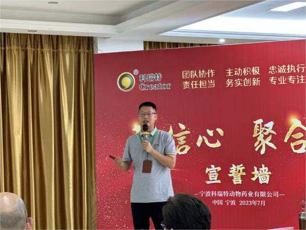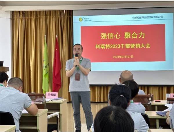 2023年7月7日-7月9日,寧波科瑞特動物藥業(yè)有限公司在寧波總公司召開“強(qiáng)信心 聚合力”2023干部大會。董事長郭瑞忠先生、副董事長劉瓊鮮女士、總經(jīng)理王云斌先生會同全體管理干部共同出席,人事行政部王麗琴女士主持本次會議。