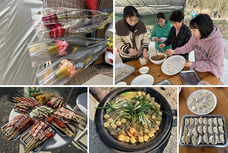 到達(dá)目的地后,大家馬上熱熱鬧鬧開(kāi)始準(zhǔn)備午飯,有清洗食材的、有生火的、有切菜的、有包餃子的、有生炭燒烤的.....大家有說(shuō)有笑地忙碌著,談笑間聊聊如何平衡家庭和工作的關(guān)系,分享一下各自的經(jīng)驗(yàn)和心得,釋放著生活帶來(lái)的各種壓力,大家其樂(lè)融融,一片歡聲笑語(yǔ)。