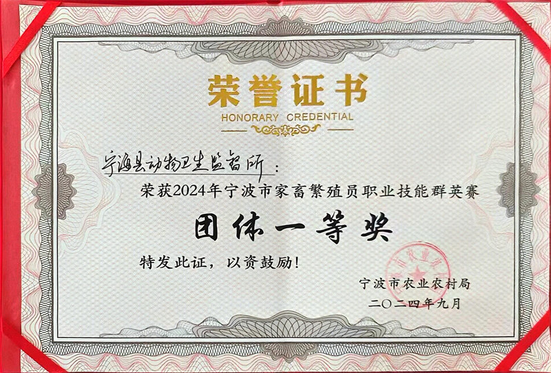 2024年9月26-27日,“寧波市家畜繁殖員職業(yè)技能群英賽”在寧波奉化區(qū)成功舉辦。寧波科瑞特動物藥業(yè)有限公司3位技術老師劉明東、李小劍、滕召海作為寧??h代表參賽。